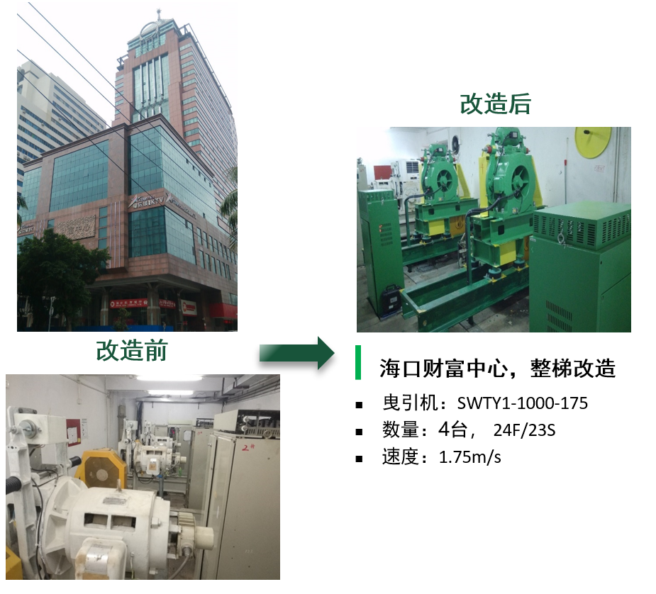 ◦ Ambiente ambientale: il rinnovamento mantiene i componenti esistenti nell'albero dell'ascensore, come binari di guida, tamponi e contrappesi,Risparmio in media di oltre 6 tonnellate di acciaio per ascensore. L'adozione di macchine per la trazione sincrono a magnete permanente del microcomputer e delle macchine permanenti di trazione sincronaRiduce il consumo di energia di circa il 50% o più.