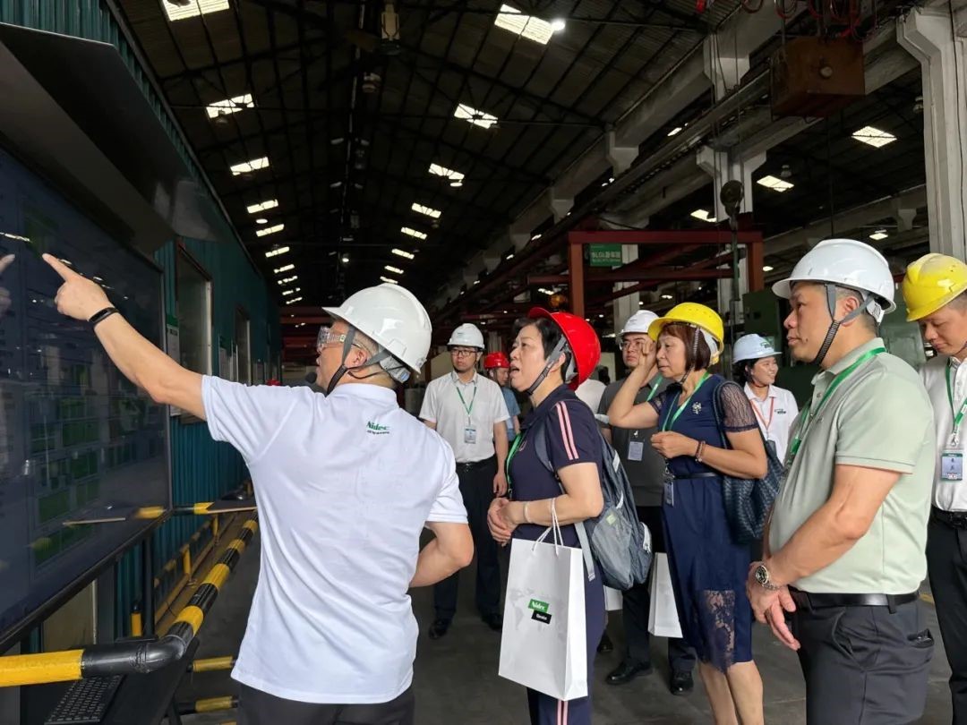 Dopo un giro di discussioni, il team dell'ascensore NIDEC ha portato i rappresentanti degli ospiti a formare gruppi, mettere i caschi di sicurezza, salire sul passaggio blu e visitare il laboratorio di produzione di motori intelligenti.