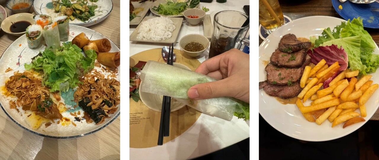 Oltre alla mostra, ho avuto la fortuna di esplorare gli splendidi luoghi del Vietnam, ognuno pieno di fascino unico. Ho Chi Minh City è un paradiso per la cucina vietnamita, dove ho assaggiato autentici piatti vietnamiti, tra cui Phở (zuppa di noodle di manzo), Bánh Mì (baguette vietnamita) e involtini primavera.